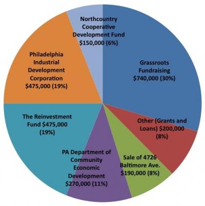 The success of our capital fundraising campaign is owed in part to the quirks of grants and donations that businesses can never anticipate in growing (such as a grant from the Commonwealth of Pennsylvania for over a quarter million dollars), but it was unequivocally anchored by the dedicated support of our members, our community, and our allies in the co-op world. About 40% of our total project funding came from these areas– the largest slice of our fundraising pie– and that breaks down into three main categories: