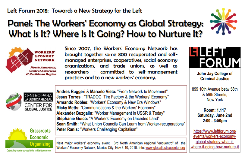 The next major workers' economy event: The 3rd North American regional "encuentro" of the Workers' Economy Network in Mexico City, Nov. 8-10, 2018.